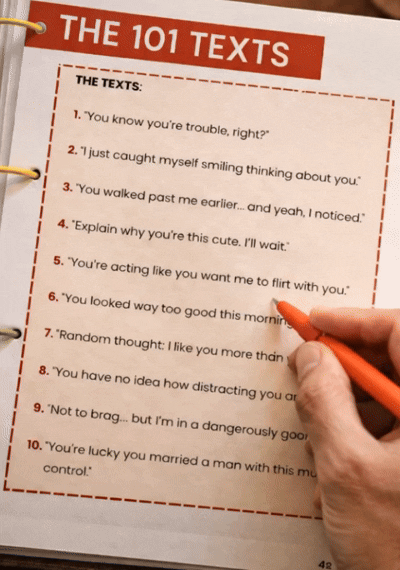 They're organized by category so you always know what to send: playful texts for when things feel distant, bold texts for when she's warming up, anticipation texts that build tension all day.
